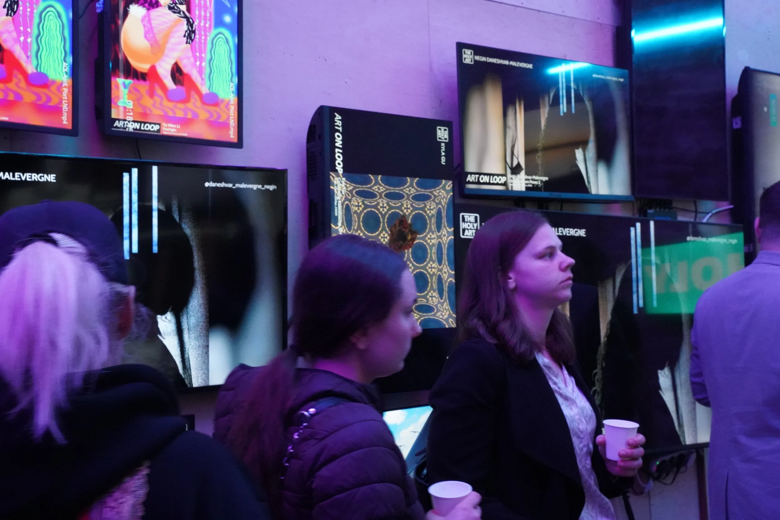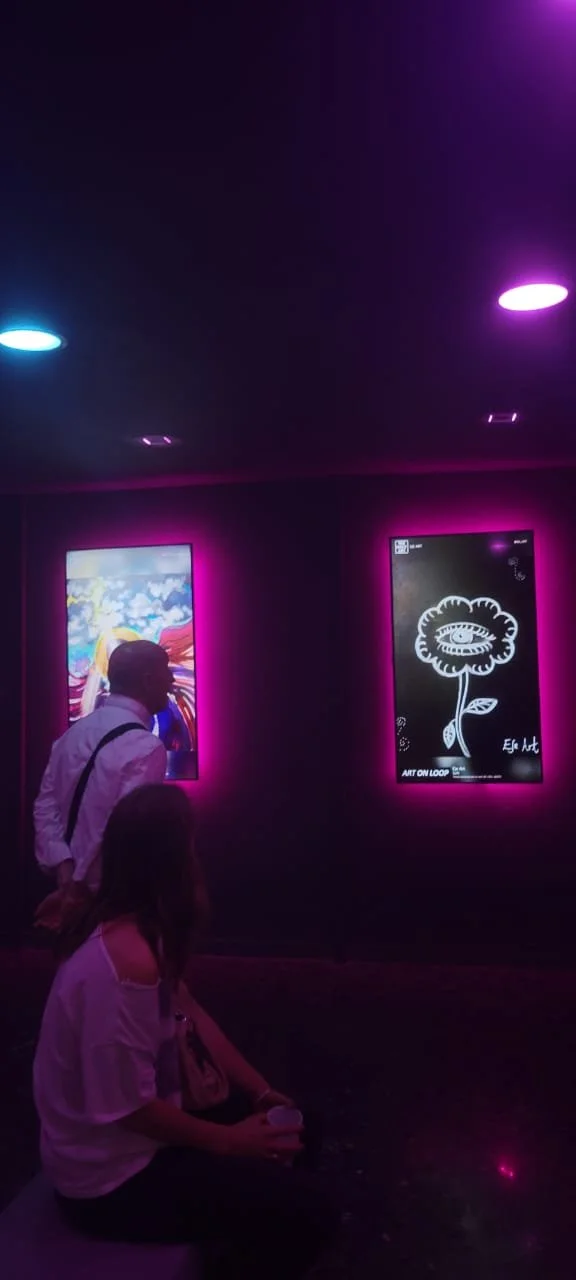 ”Art On Loop” is a group show taking place in two different galleries at the same time showcasing an exciting number of artists on digital screens.